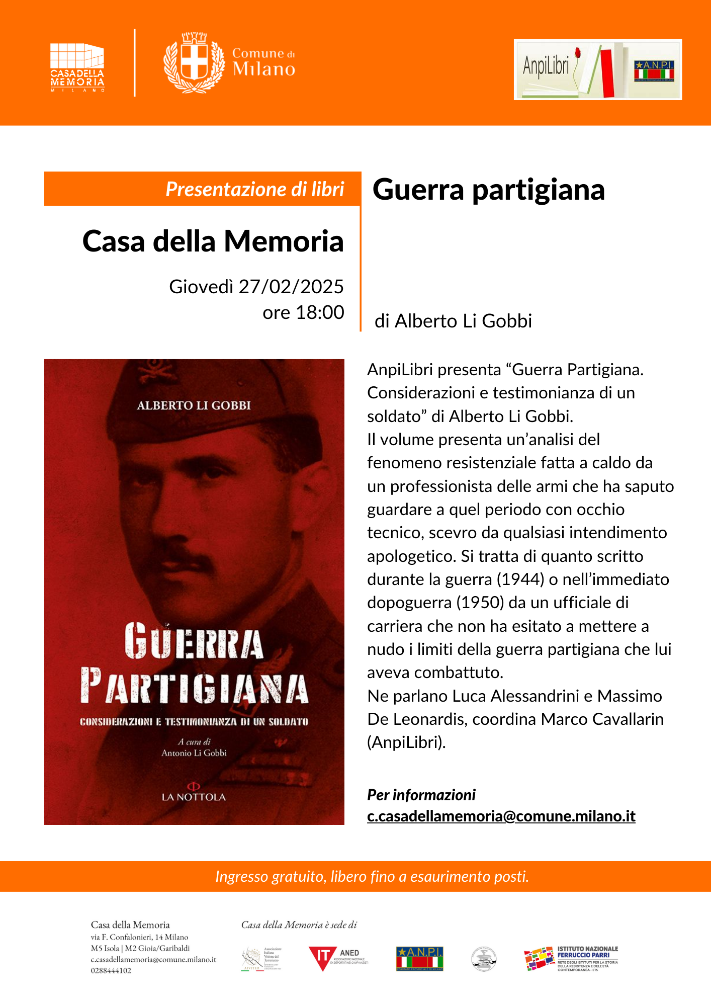 Giovedì 27/02/2025, ore 18:00 - Guerra partigiana. Considerazioni e testimonianza di un soldato di Alberto Li Gobbi, ed La Nottola