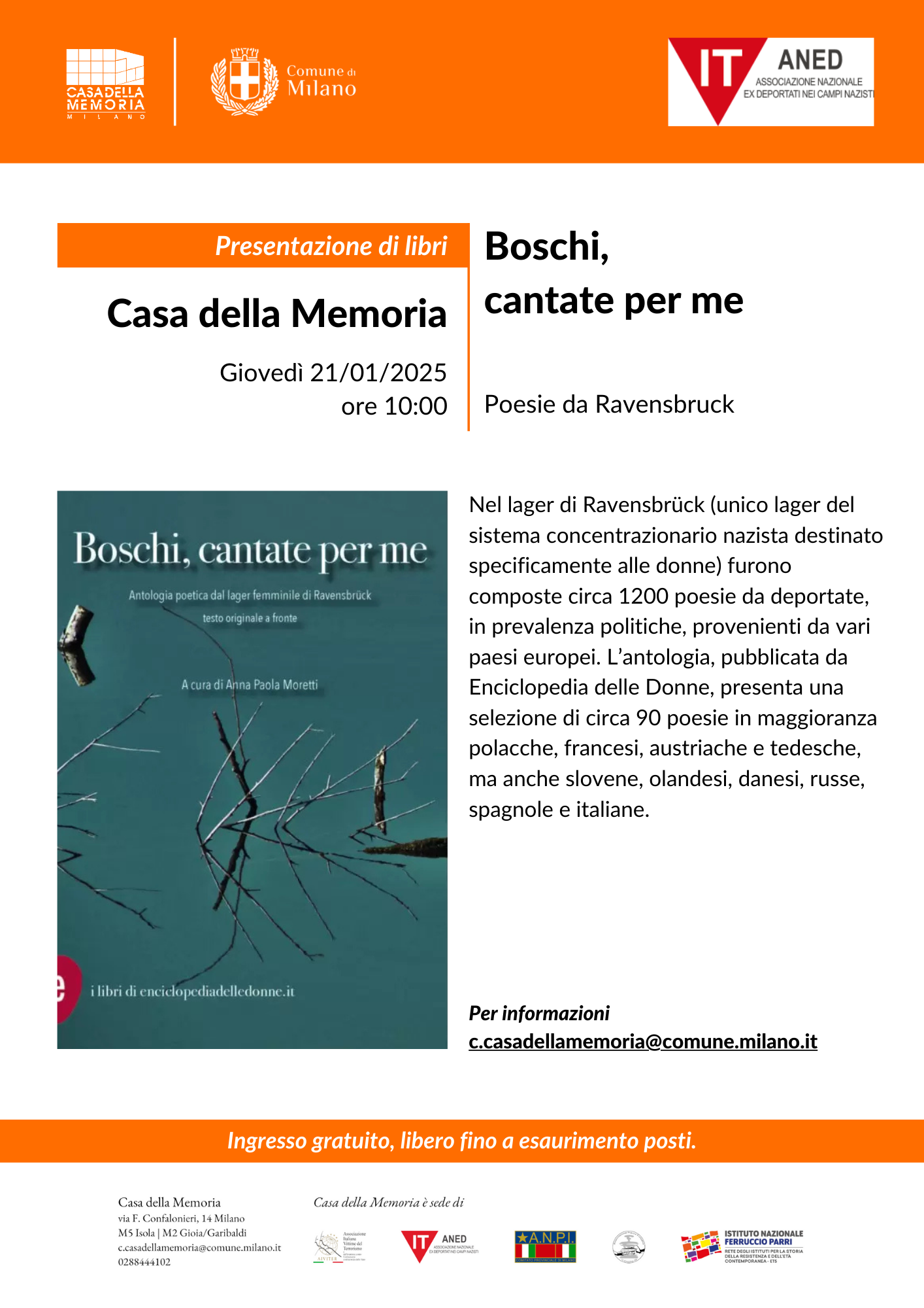 Giovedì 21/01/2025, ore 10:00 - Presentazione di libri "Boschi cantate per me" di Poesie da Ravensbruck