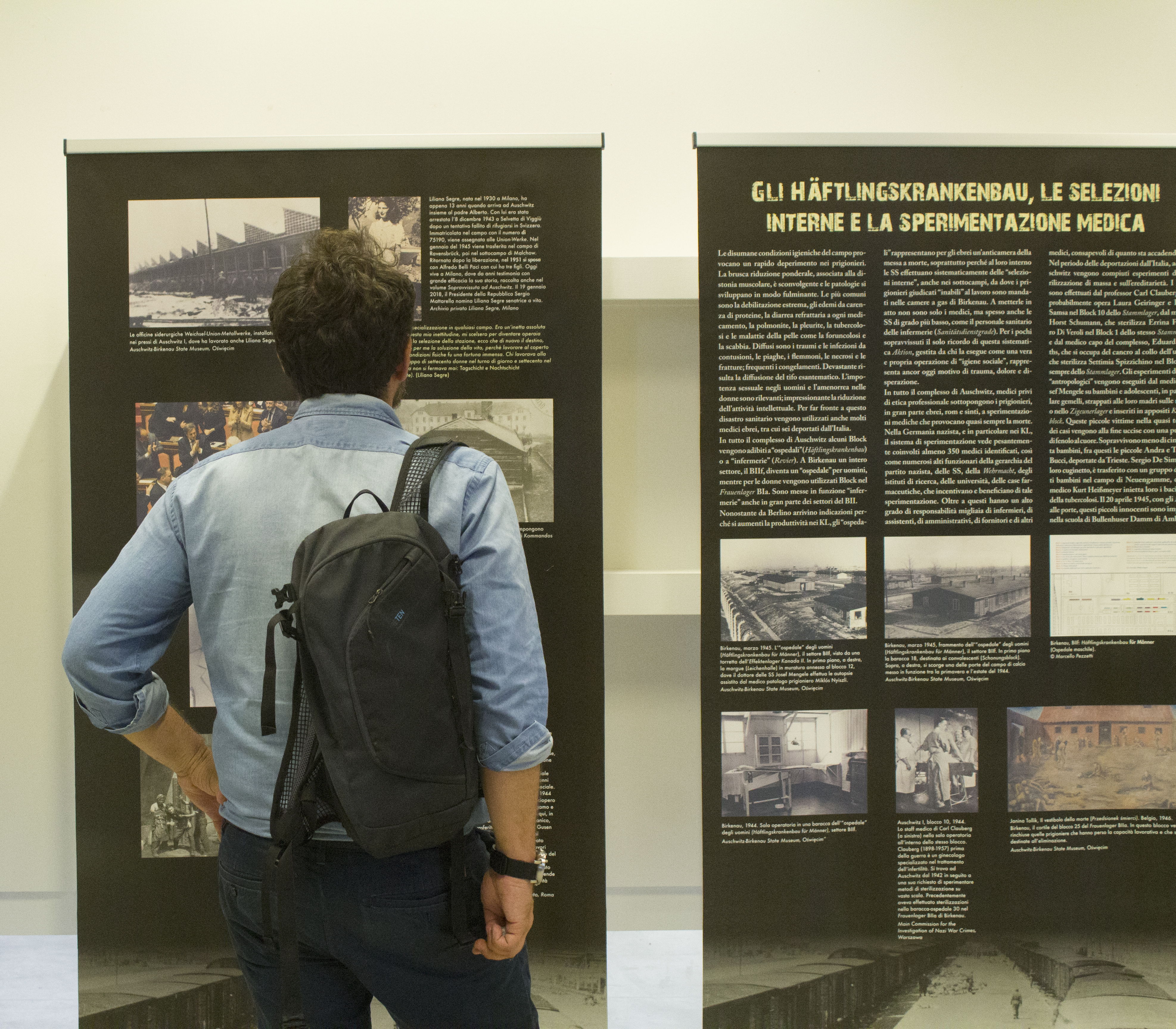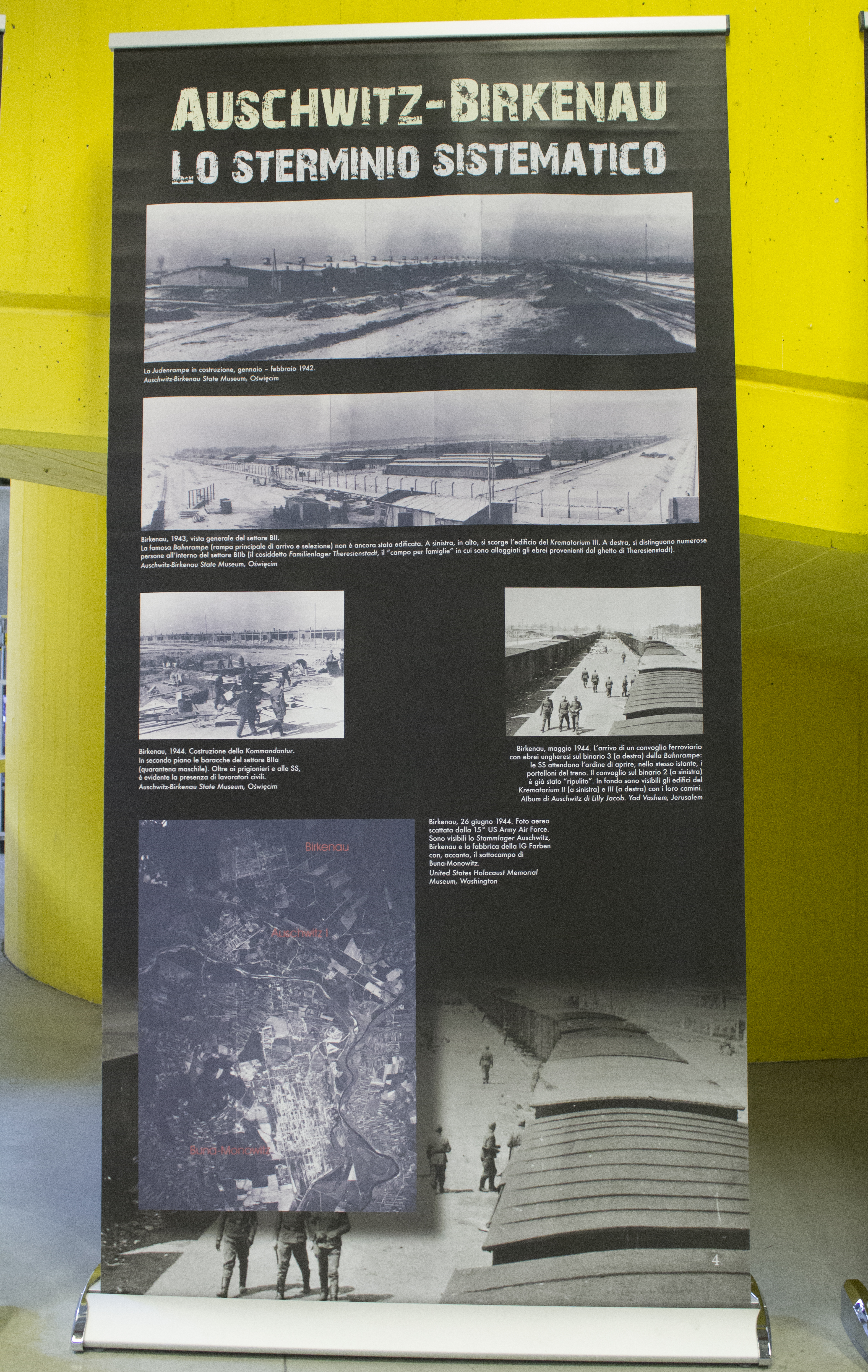 L’esposizione descrive la storia delle persone arrestate tra il 1943 e il 1944 nel territorio italiano e deportate nel complesso concentrazionario di Auschwitz-Birkenau.