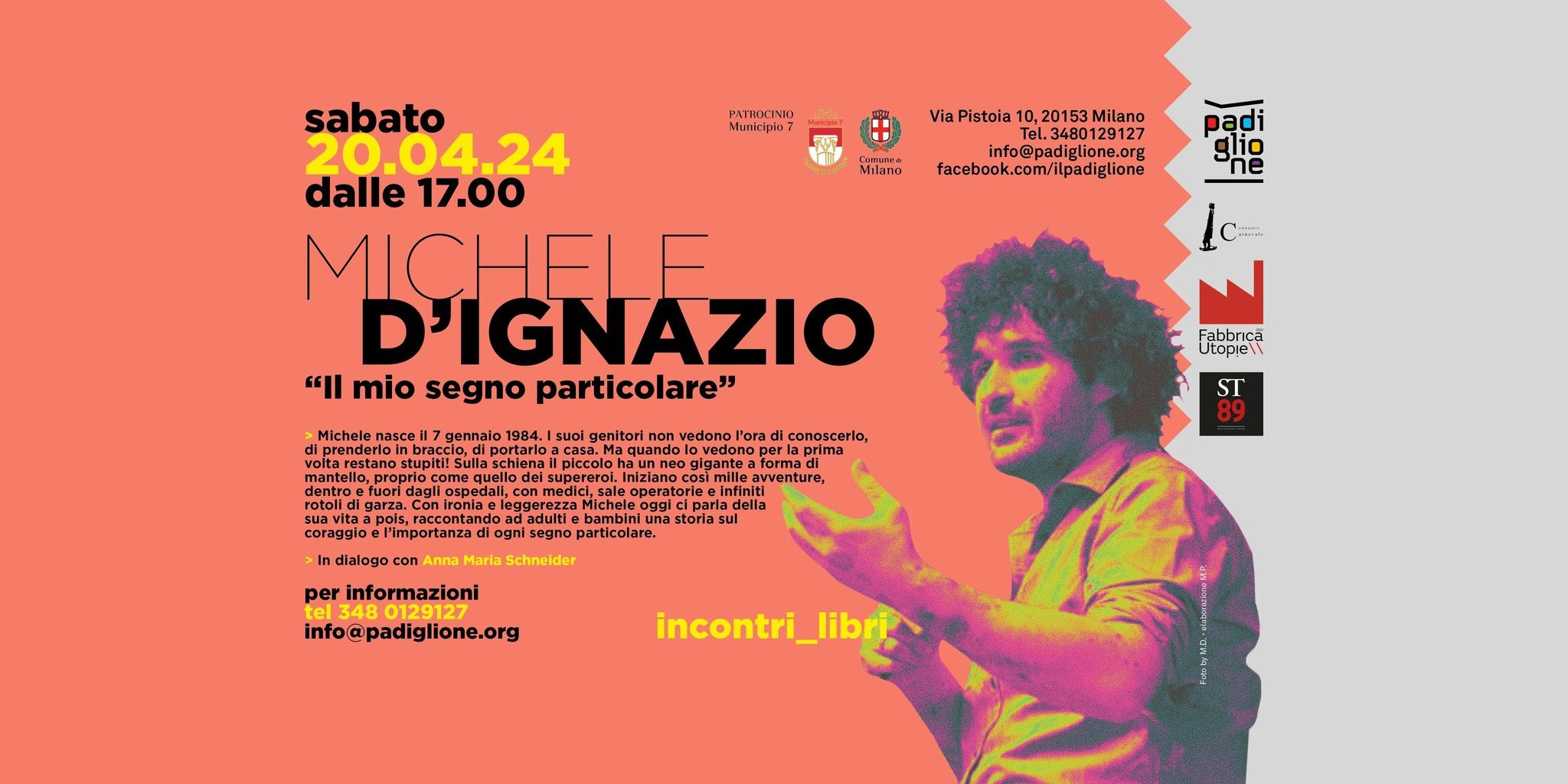 Milano, 16 aprile 2024 - Sabato 20 Aprile a partire dalle 17.00 al padiglione incontro con Michele D’Ignazio, autore di “Il mio segno particolare” in dialogo con Anna Maria Schneider.