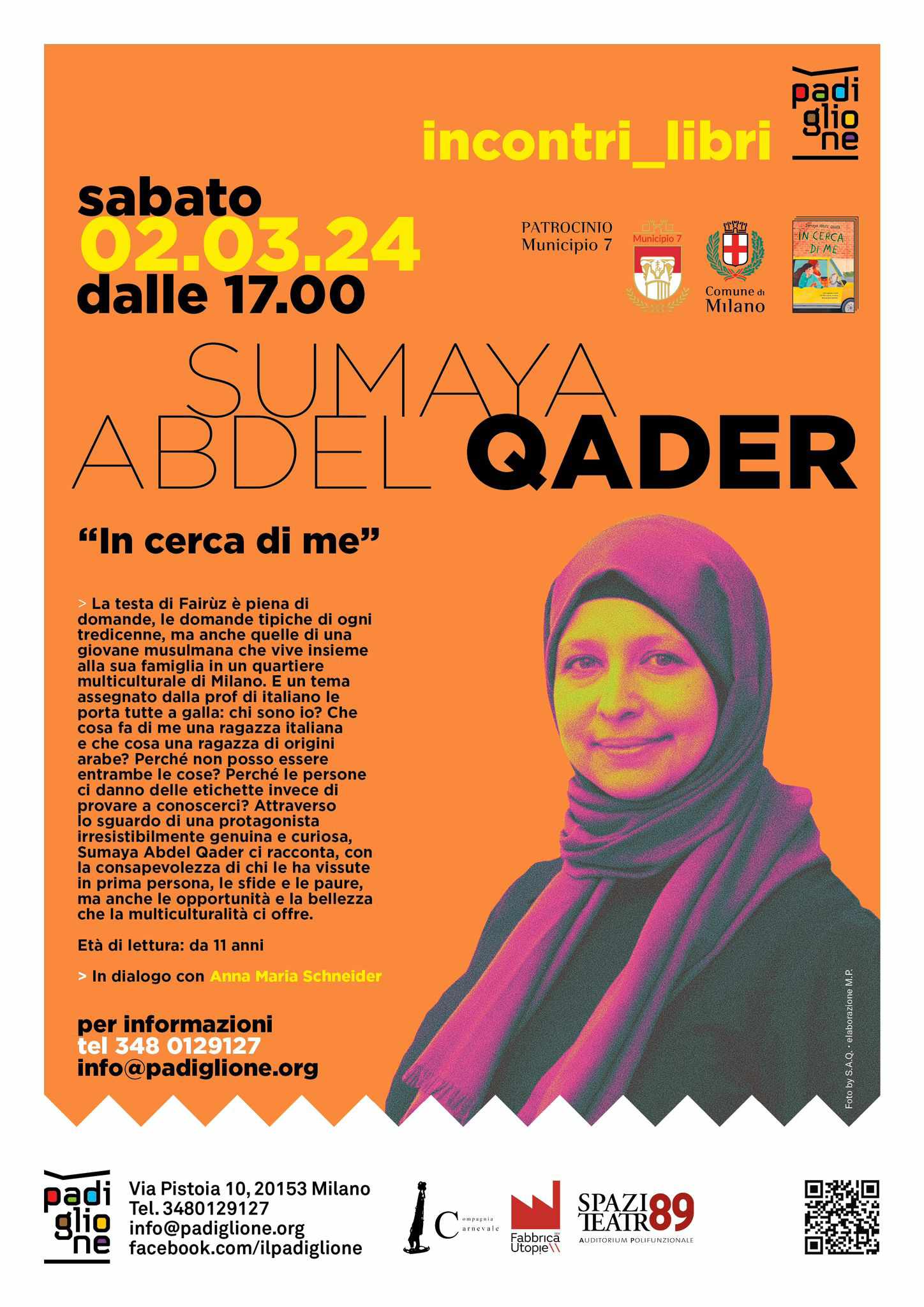 Sabato 2 Marzo a partire dalle 17.00 al padiglione incontro con Sumaya Abdel Qader, autrice di “In cerca di me” in dialogo con Anna Maria Schneider.