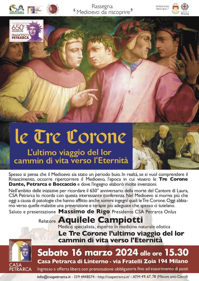 Il CSA Petrarca Onlus con il patrocinio del Municipio 7 di Milano invita i cittadini alla rassegna ‘Medioevo da riscoprire’ sabato 16 marzo 2024 alle ore 15:30, presso Casa Petrarca di Linterno, via Fratelli Zoia 194 Milano.